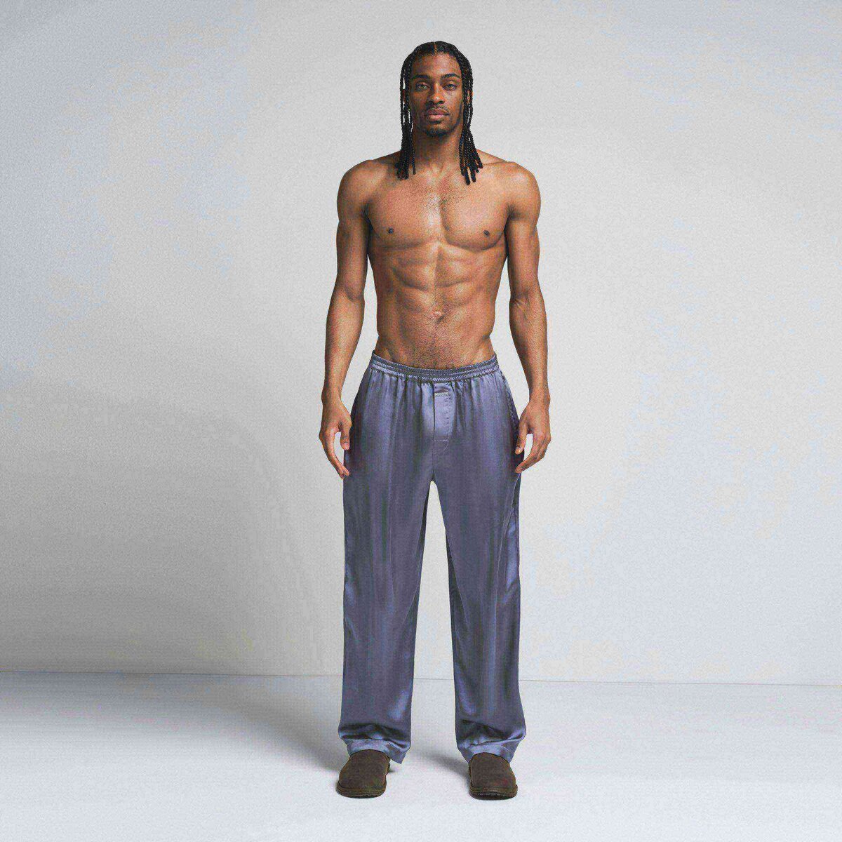 Drift off in SKIMS. Made with our sleek, satiny fabric, this luxe sleep pant features a smooth elastic waistband and side pockets. Complete with hidden button fly and SKIMS logo label at the center front. Fits true to size.