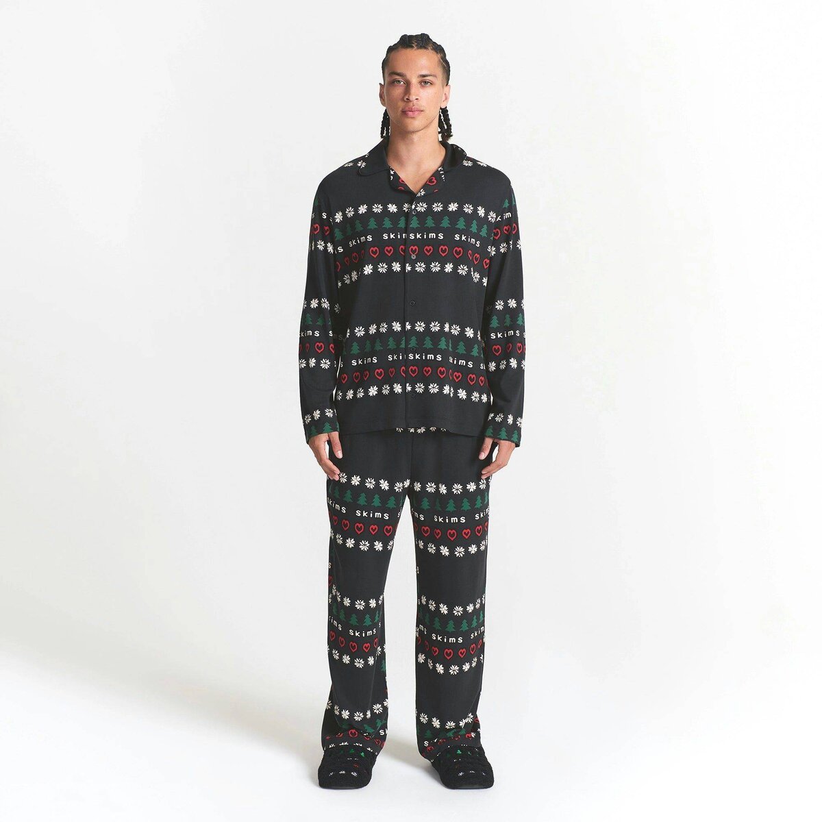 Our signature super soft Jersey Sleep meets Cactus Plant Flea Market’s bold iconography. This sleep set includes a collared, button-up sleep shirt with piping details and a straight leg pant with an elastic waistband and side pockets.