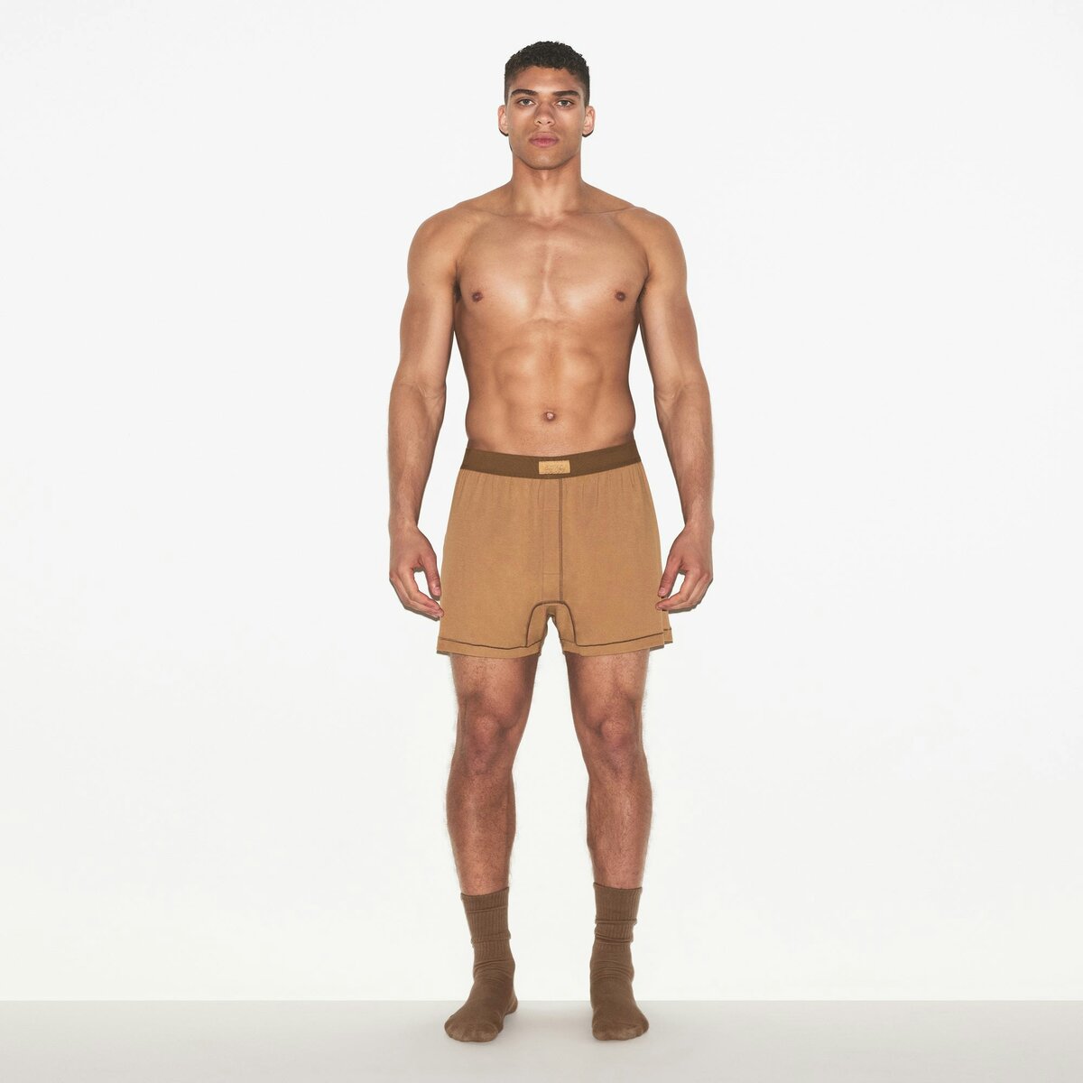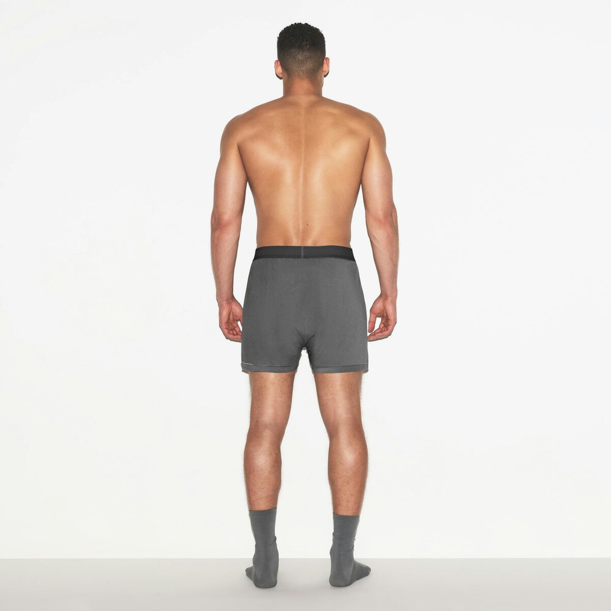 • 3-Pack, Skims branding on exterior waistband, Knit boxer silhouette, Functional fly opening with hidden button, Functional fly opening, Slim boxer fit, Inseam: 5, 5”