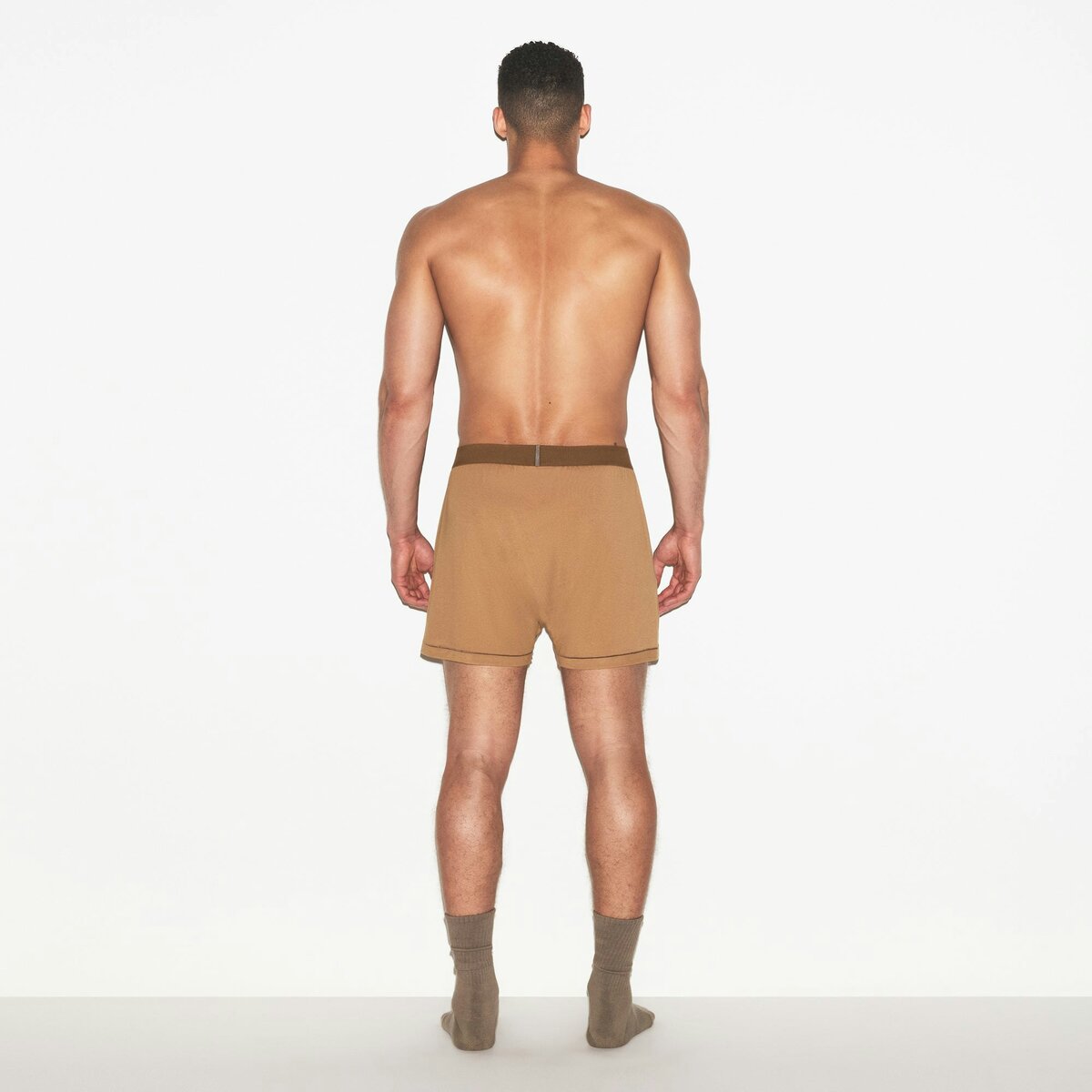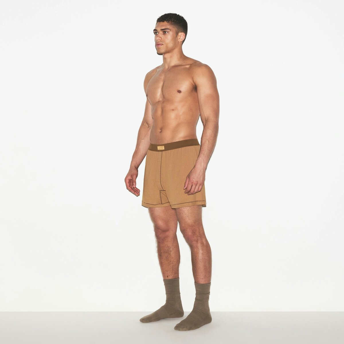 The slim boxer you’ll wish you switched to sooner. Engineered with our soft, breathable cotton with built-in recovery, this knit boxer brings you the best in comfort. Features a functional fly opening with hidden button and SKIMS logo at the soft waistband. Fits true to size.