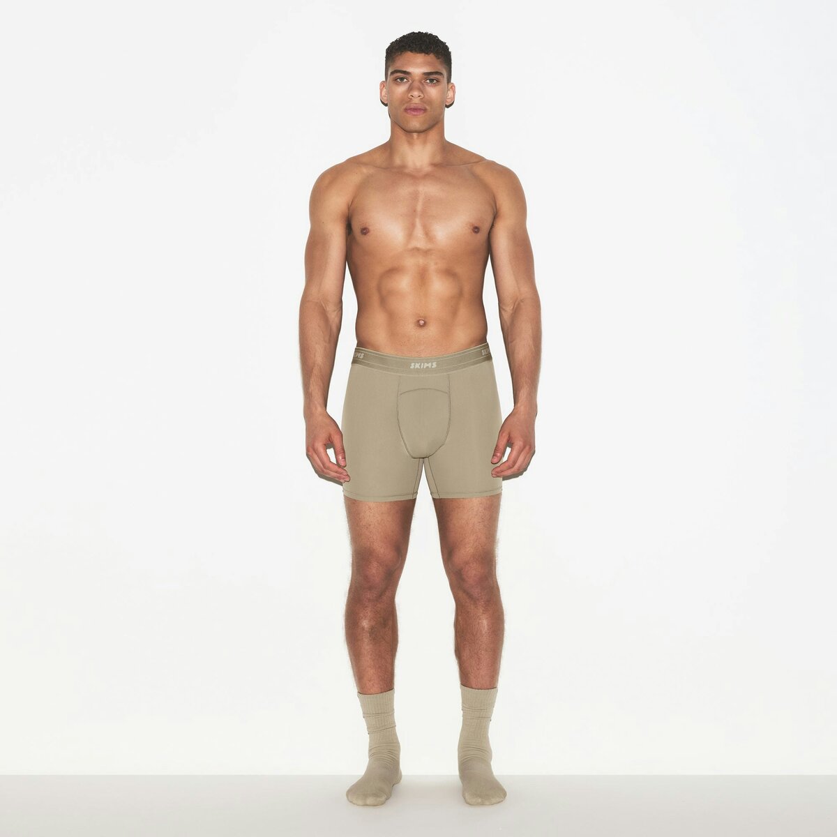 With innovative moisture-wicking properties and an enhanced mesh crotch for the perfect fit, these boxer briefs are the ultimate first layer. Made with a 4-way ultra stretch fabric that is designed to retain its shape and a taller, SKIMS logo waistband for improved support, you’ll have these boxers on heavy rotation. Fits true to size.