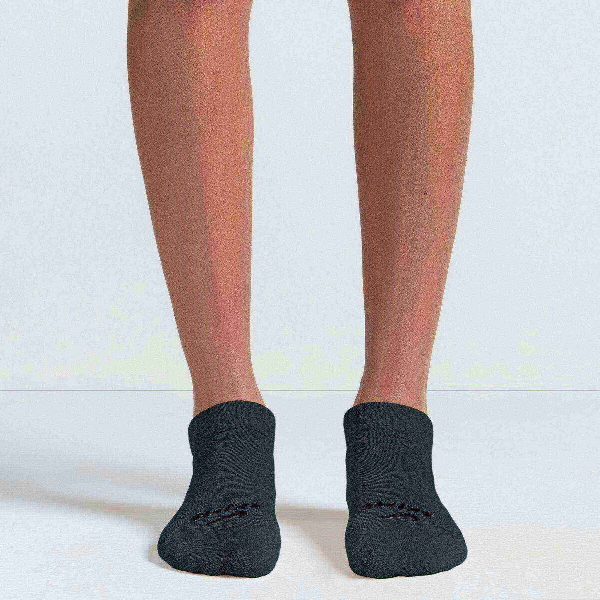 - Cushioned foot bed and heel, Band around arch for support, Breathable knit vents, Reinforced heel and toe, Ankle length