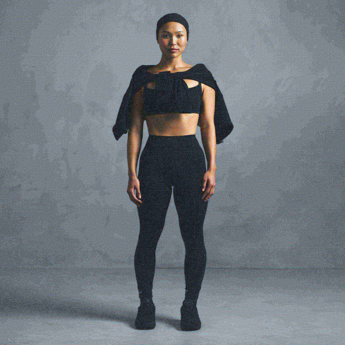 - Alyson is size 0, 32A, and 5’9” (175cm), wearing SKIMS XS
