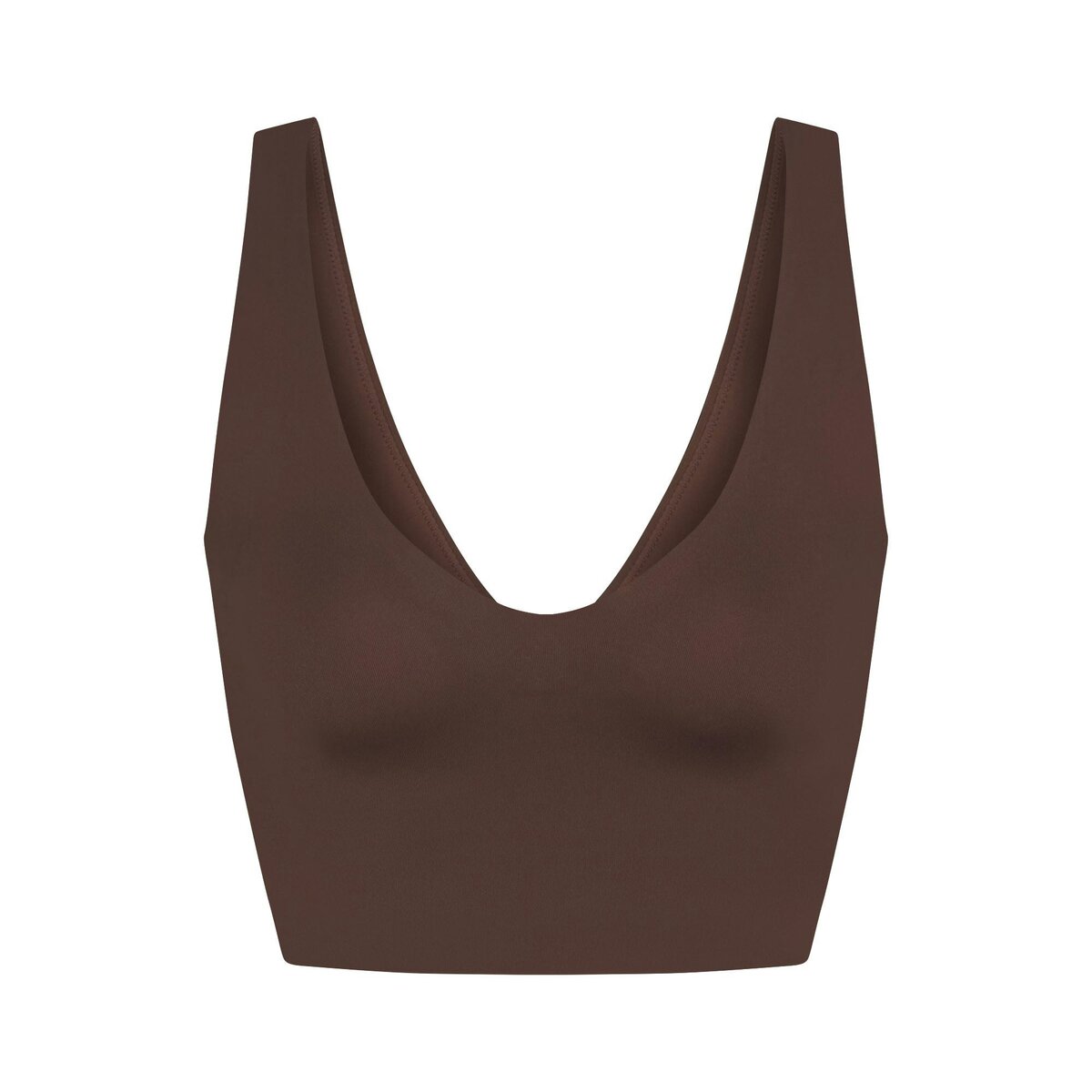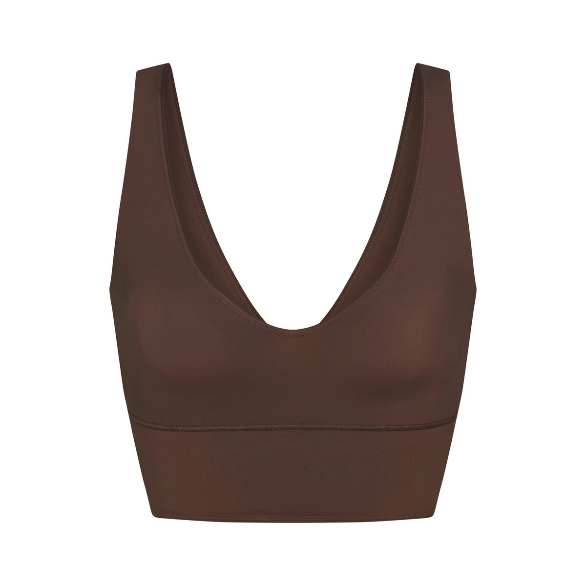 - Plunge v-neck, Slight kiss mold for added bust depth that does not flatten, Silicone matte logo at center back, Longline length, Pullover style, Fits tight to body, Best for low to medium impact