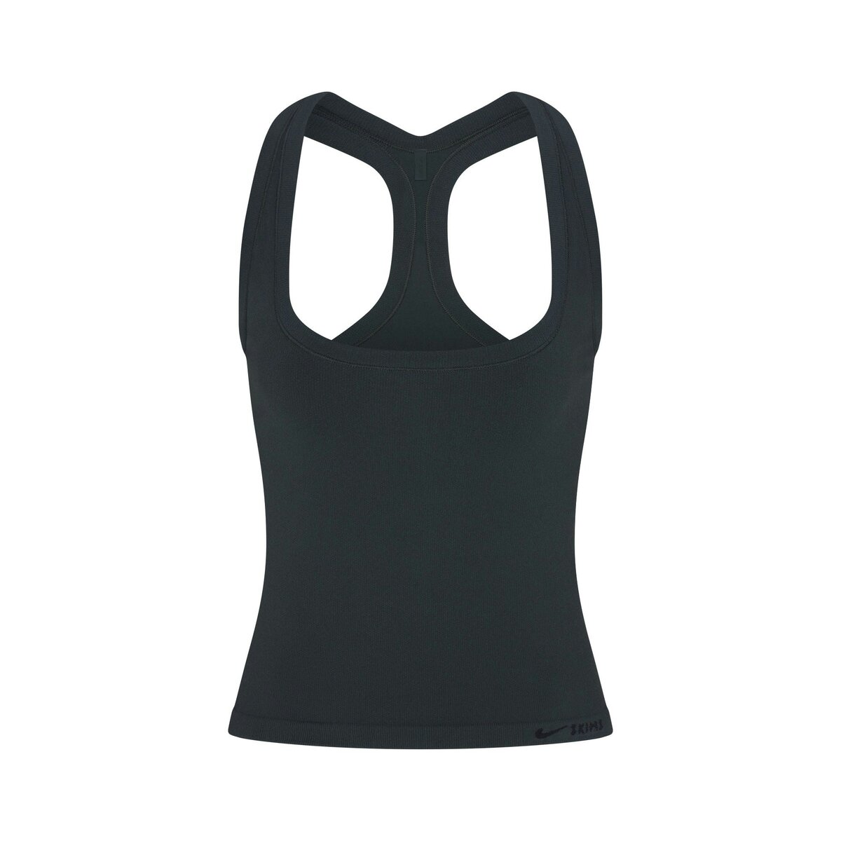 - Scoop neck, Internal shelf bra, Racerback design, Logo at front hem, Fits tight to body