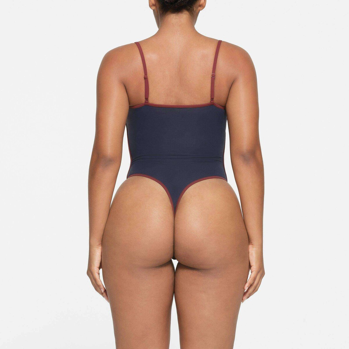 First-place style, second-skin comfort. This sporty bodysuit comfortably enhances your curves thanks to our beloved buttery fabric that is soft and stretchy beyond compare. Features contrast trim along the sexy scoop neck, adjustable straps, sides, and legs. Complete with a 100% cotton gusset that snaps. Fits true to size.