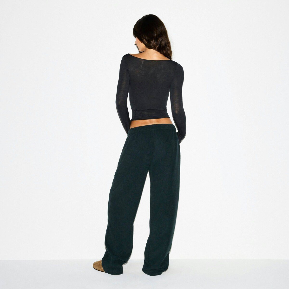 Warm up your cold-weather wardrobe with this chic straight leg pant, designed in our plush, mid-weight polar fleece. Features side zipper pockets, contrast detailing, and an interior bungee cord for an adjustable fit. Fits true to size.