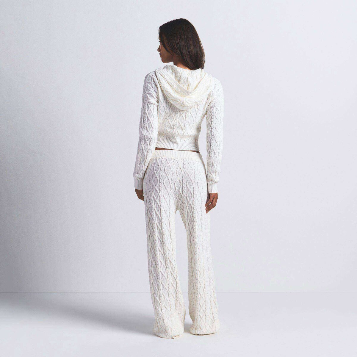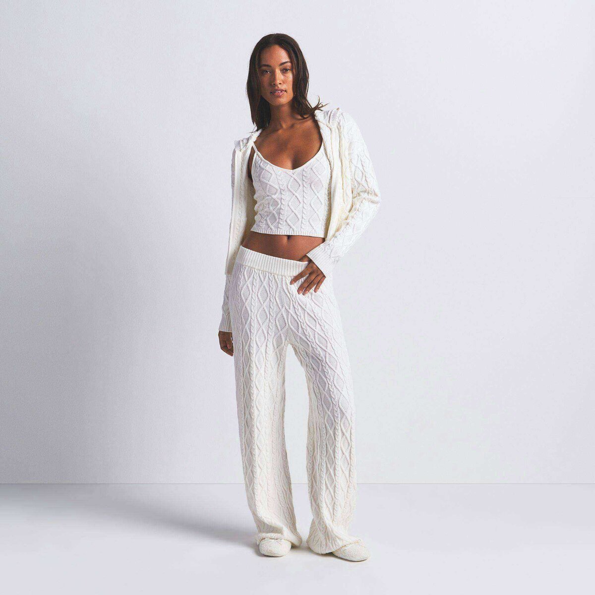 Snowed in, styled up. Designed in our luxurious cable knit fabric, these straight leg pants feature a ribbed waistband and adjustable drawcord. The perf…