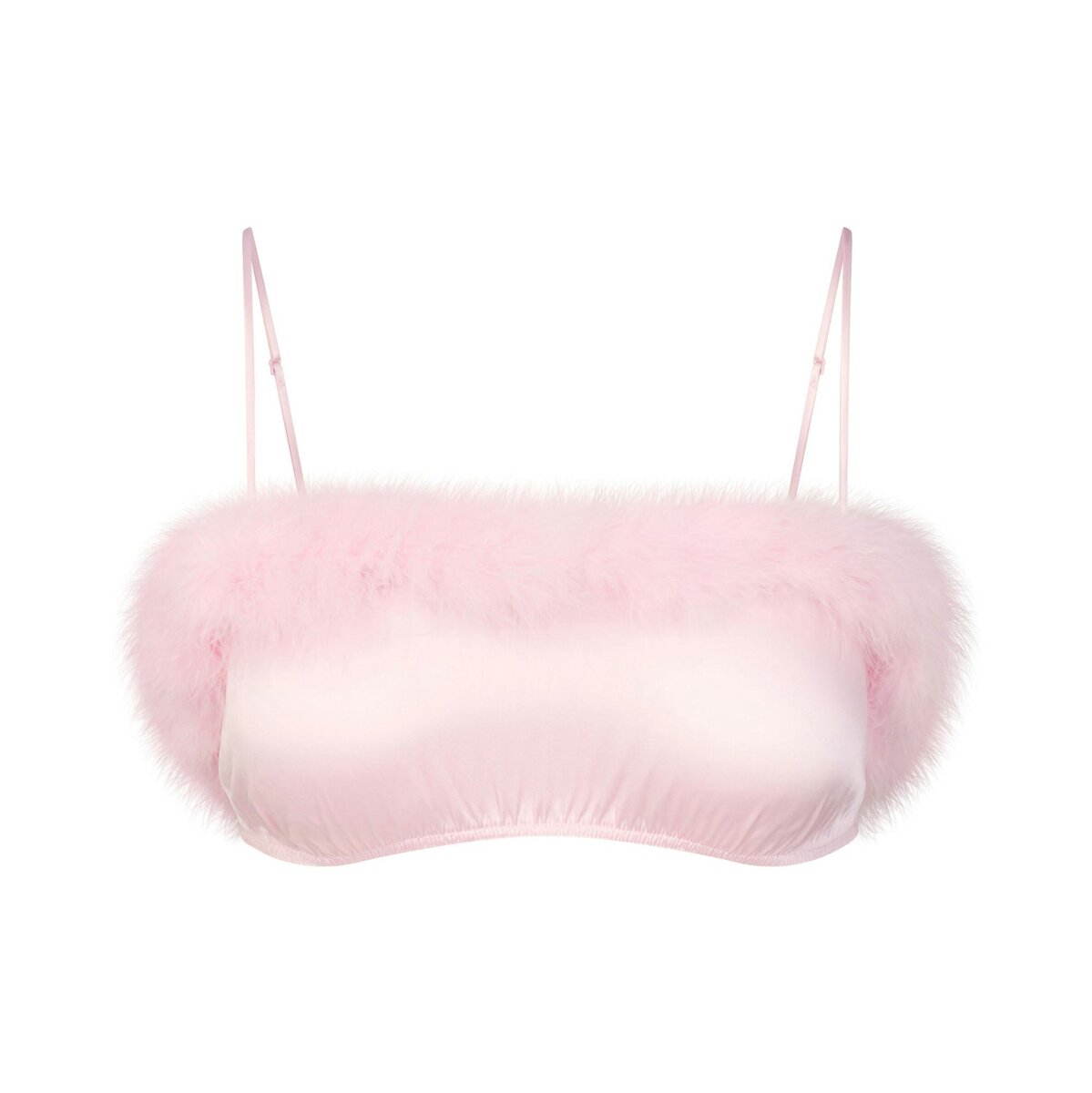 A touch of feather-light glamour. Wear with the trim for high-impact style, or go refined without—either way, this silk bandeau is your chicest style choice for holiday events and beyond.