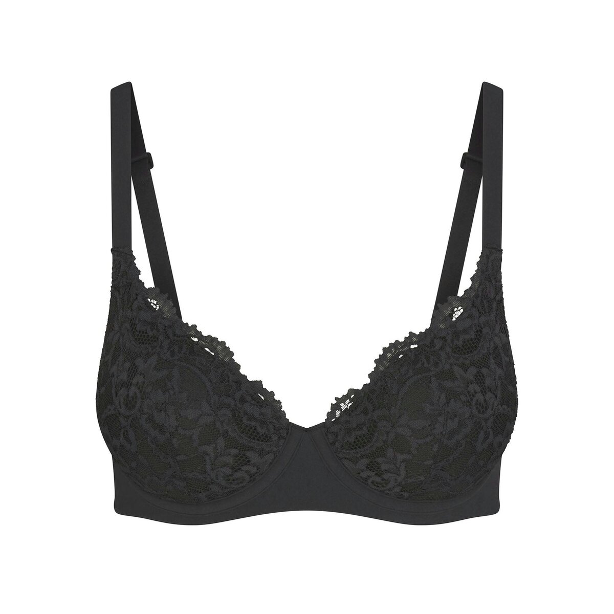 The sexy, lacy bra of your dreams. This feminine, lace-adorned solution gives you the perfect coverage with its lightly lined, full cups. Offers a custom-made fit with our signature stretch technology and all-day comfort thanks to our beloved fabric that feels like butter. Supports your curves with a flexible underwire that doesn’t dig and stretchy wings that smooth. Features adjustable straps that can be crossed and a hook and eye back closure. Fits true to your SKIMS bra size.