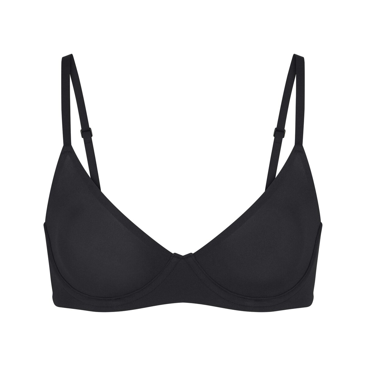 This buttery-soft, everyday demi bra has innovative cup technology for the most comfortable and perfect fit. Features 360 stretch to perfectly fit in between sizes, flexible underwire for support, unlined cups, adjustable straps, and hook and eye back closure. Fits true to your SKIMS bra size.