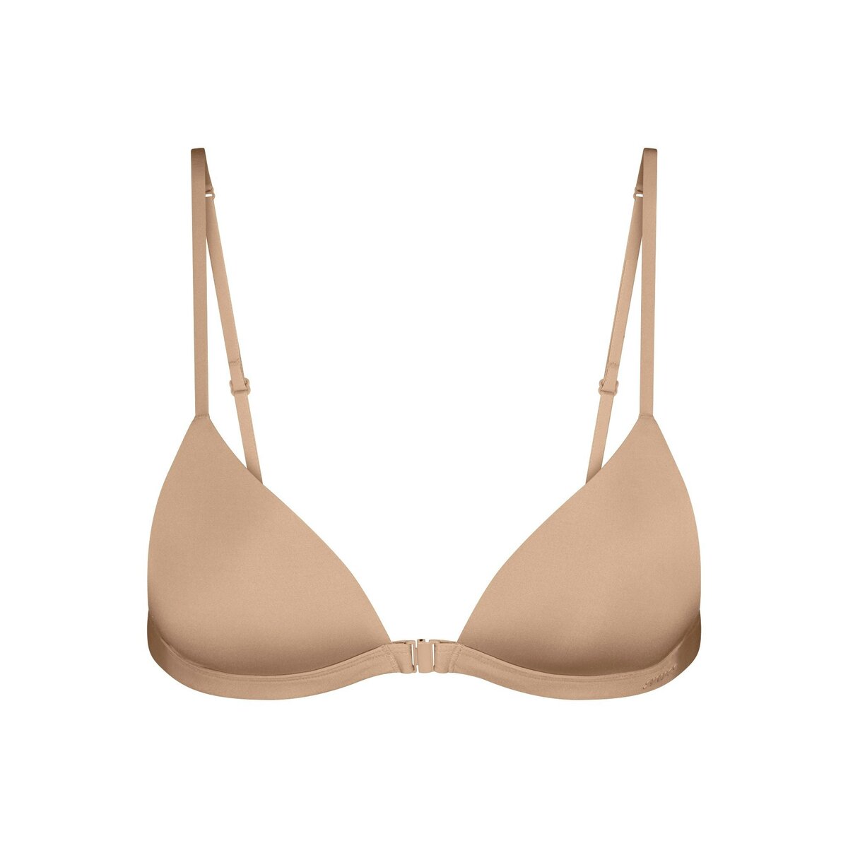 This wireless triangle bra features push-up foam pads for perfect lift and convertible, adjustable straps for versatile styling. Complete with a center clasp closure and SKIMS logo detail on the thin underband. Fits true to size.