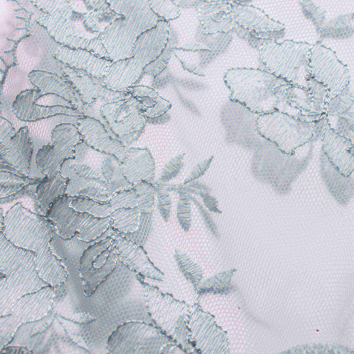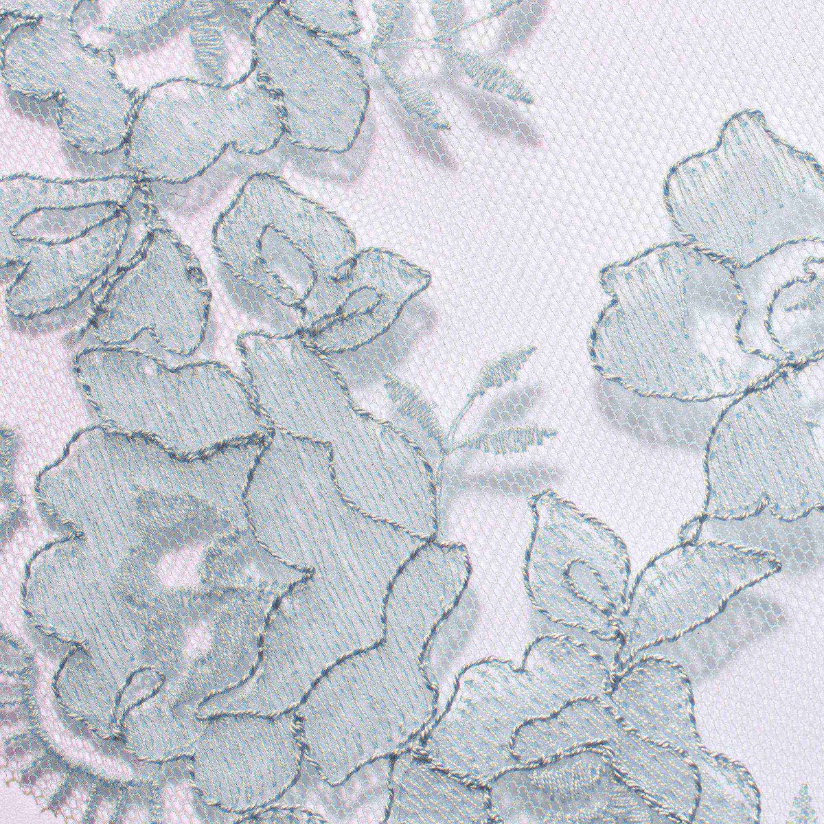 • Wide scoop neckline, Adjustable straps, Bows at front straps, Sheer through the body with embroidery at hem, Long length