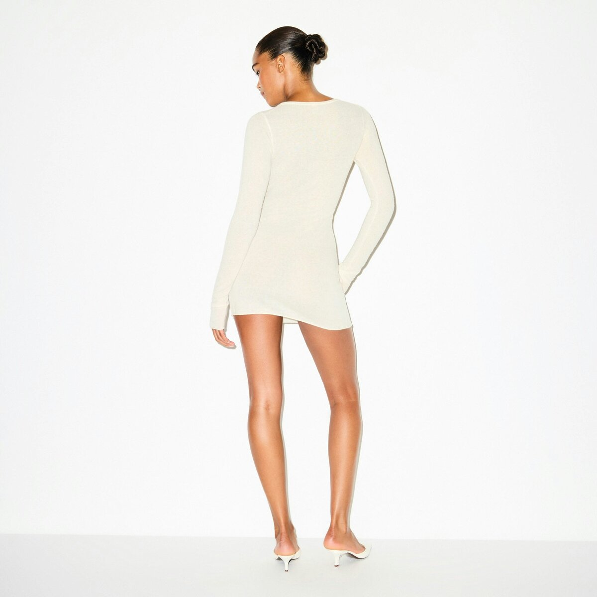 Slip into premium, soft comfort. Our 100% Grade A Cashmere makes this henley mini dress a cozy must-have addition to your wardrobe. Features a semi-sheer finish, scoop neckline, and rolled edge details. Fits true to size.
