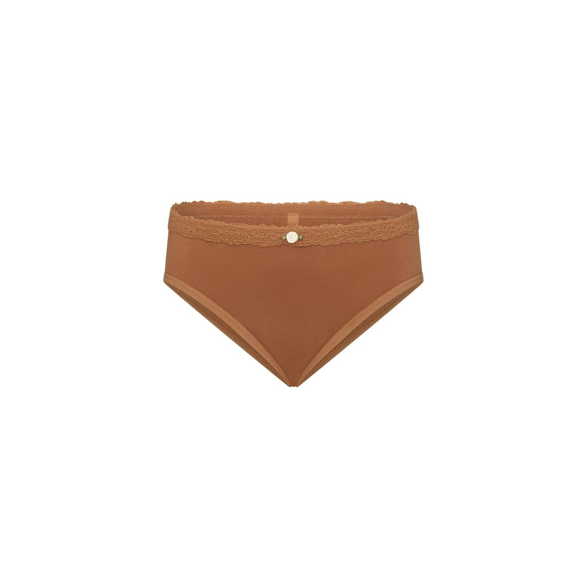 Comfort meets cute. These mid-rise bikinis are finished with lace trim and a rosette bow at the front, offering full bikini coverage in a soft, stretchy fabric.