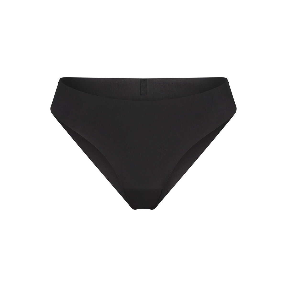 • Mid-rise, Raw edge waist and leg opening, Cotton gusset, Medium back coverage