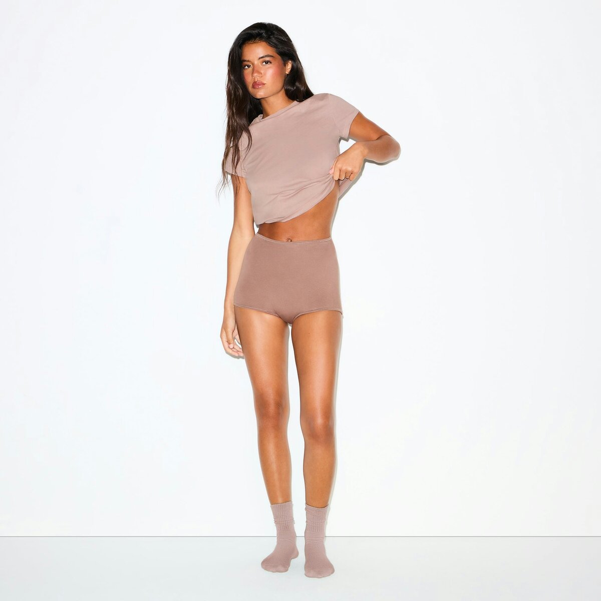 • Sydnee is size 2, 32B, and 5′ 8” (176 cm), Wearing SKIMS S