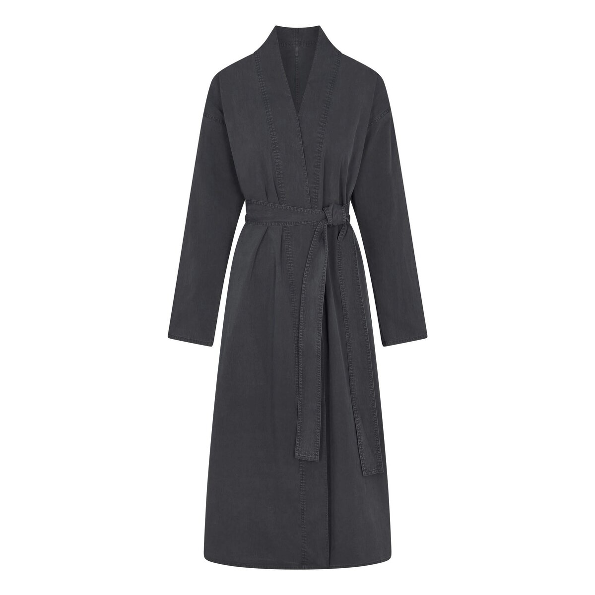 Elevate your comfort in this long, relaxed robe, made with our new, crisp woven fabric. Features an adjustable belt, side pockets, and a center back slit for breathability. Fits true to size.