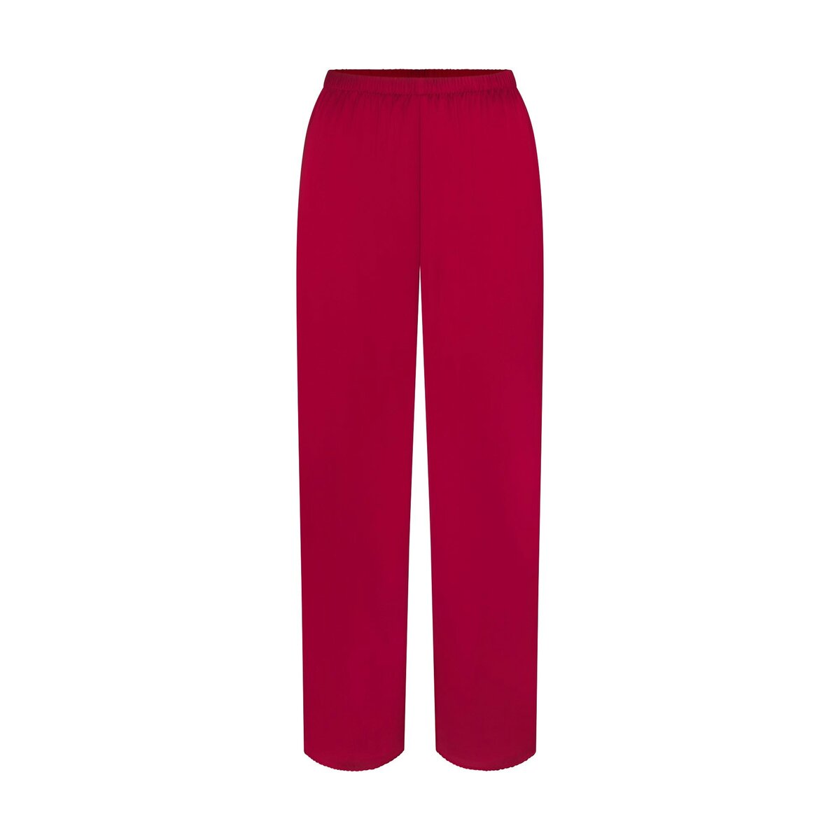 The secret to your most comfortable sleep. Made with our satiny Woven Shine fabric, this sexy two-piece set includes a long sleeve-button up with a chest pocket, center back logo label, and slits at the side seams. The relaxed straight leg pant features an encased elastic waistband and picot edge stitching details.