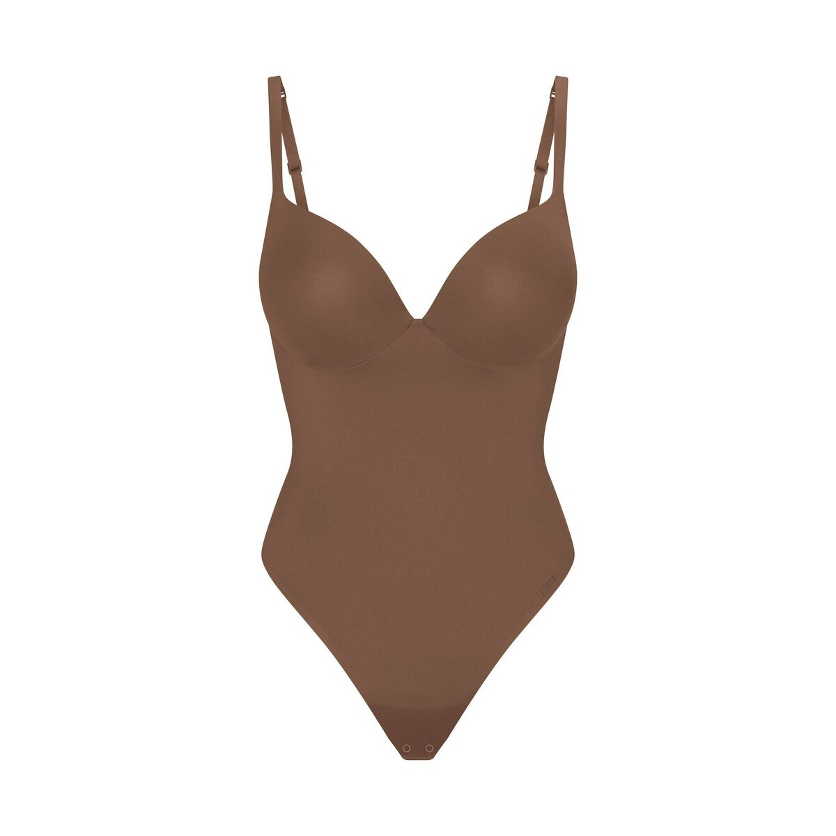 - Plunge neckline, Push-Up padding, Concealed underwire, Adjustable straps, Interior wing elastic for support, Thong coverage, Snaps at gusset, Power mesh lining for added compression