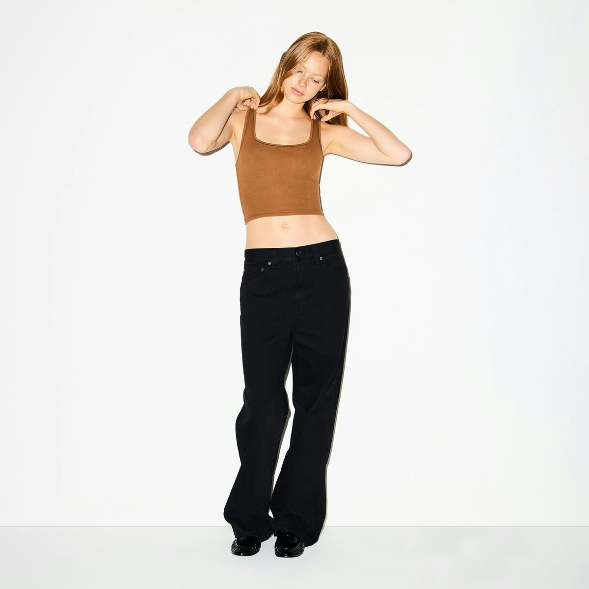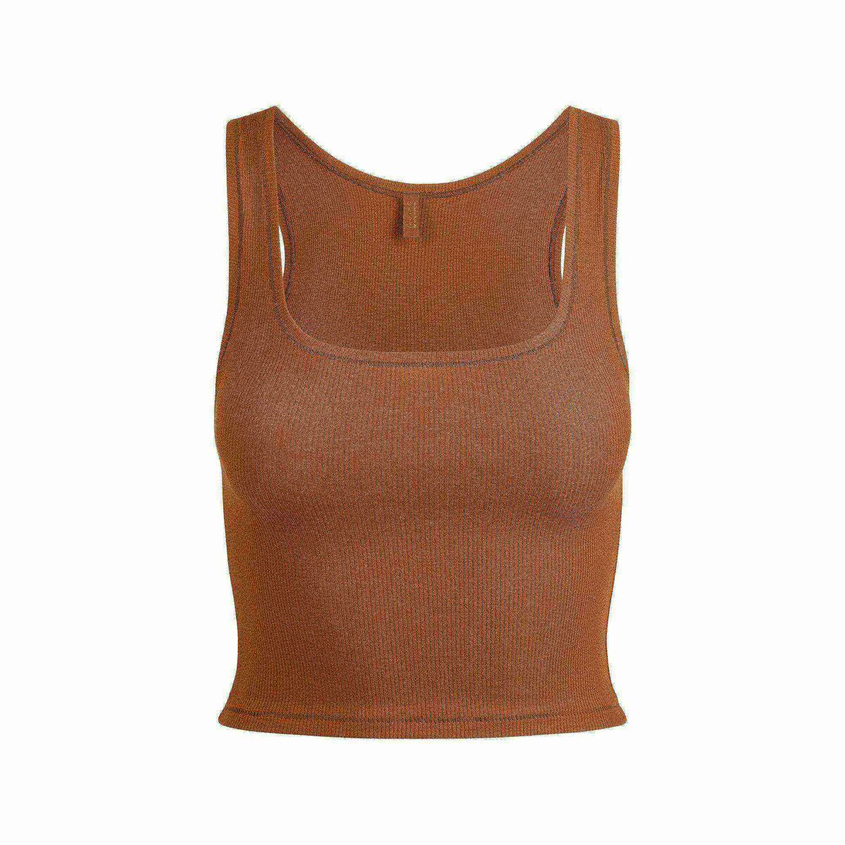 Everyone agrees – this tank is 10/10. This classic style is made with our iconic, breathable ribbed cotton that stretches to your curves for an all-day comfortable, flattering fit. Features a chic scoop neck and a slightly cropped length. Fits true to size.