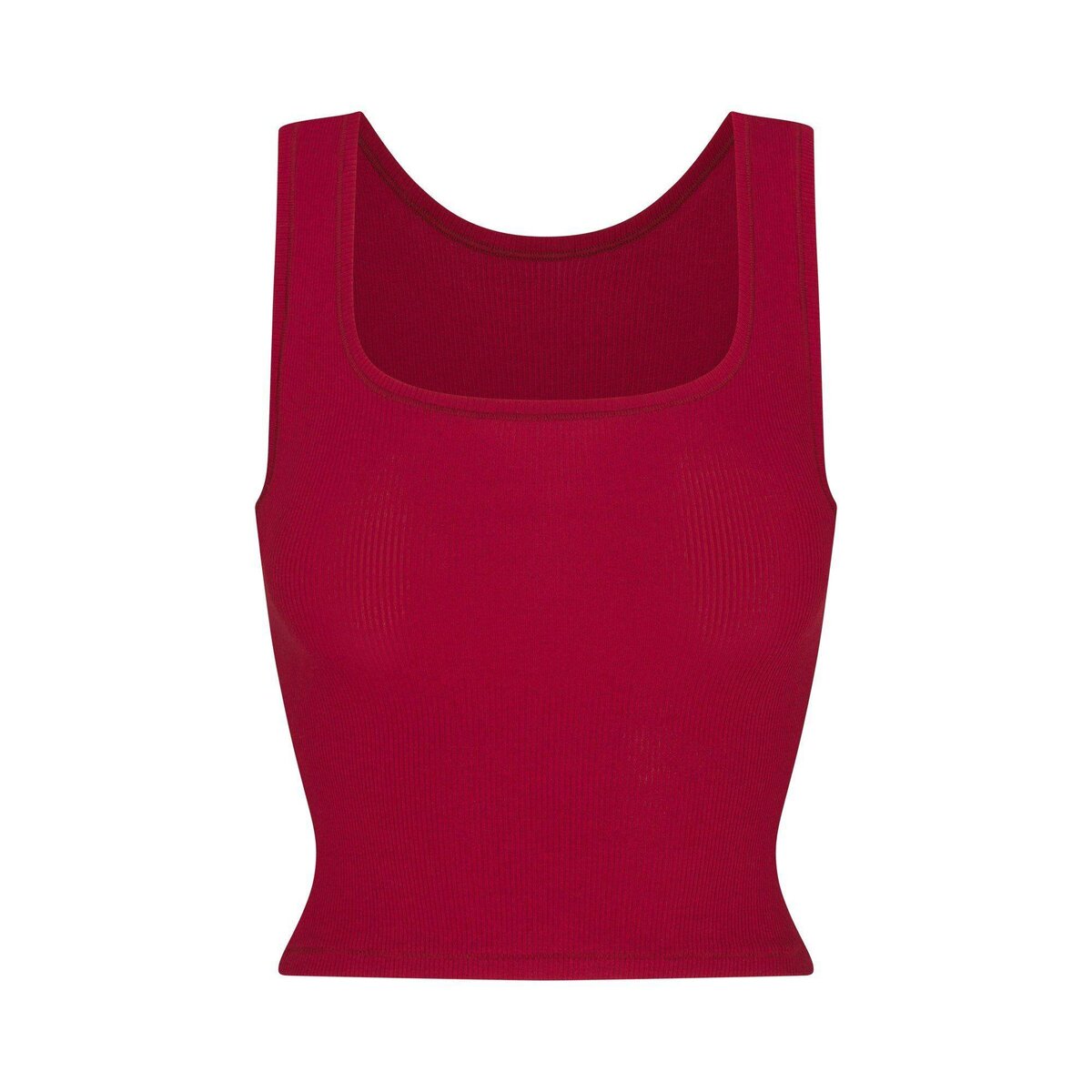 Everyone agrees – this tank is 10/10. This classic style is made with our iconic, breathable ribbed cotton that stretches to your curves for an all-day comfortable, flattering fit. Features a chic scoop neck and a slightly cropped length. Fits true to size. For a longer length, check out our Cotton Rib Long Tank.