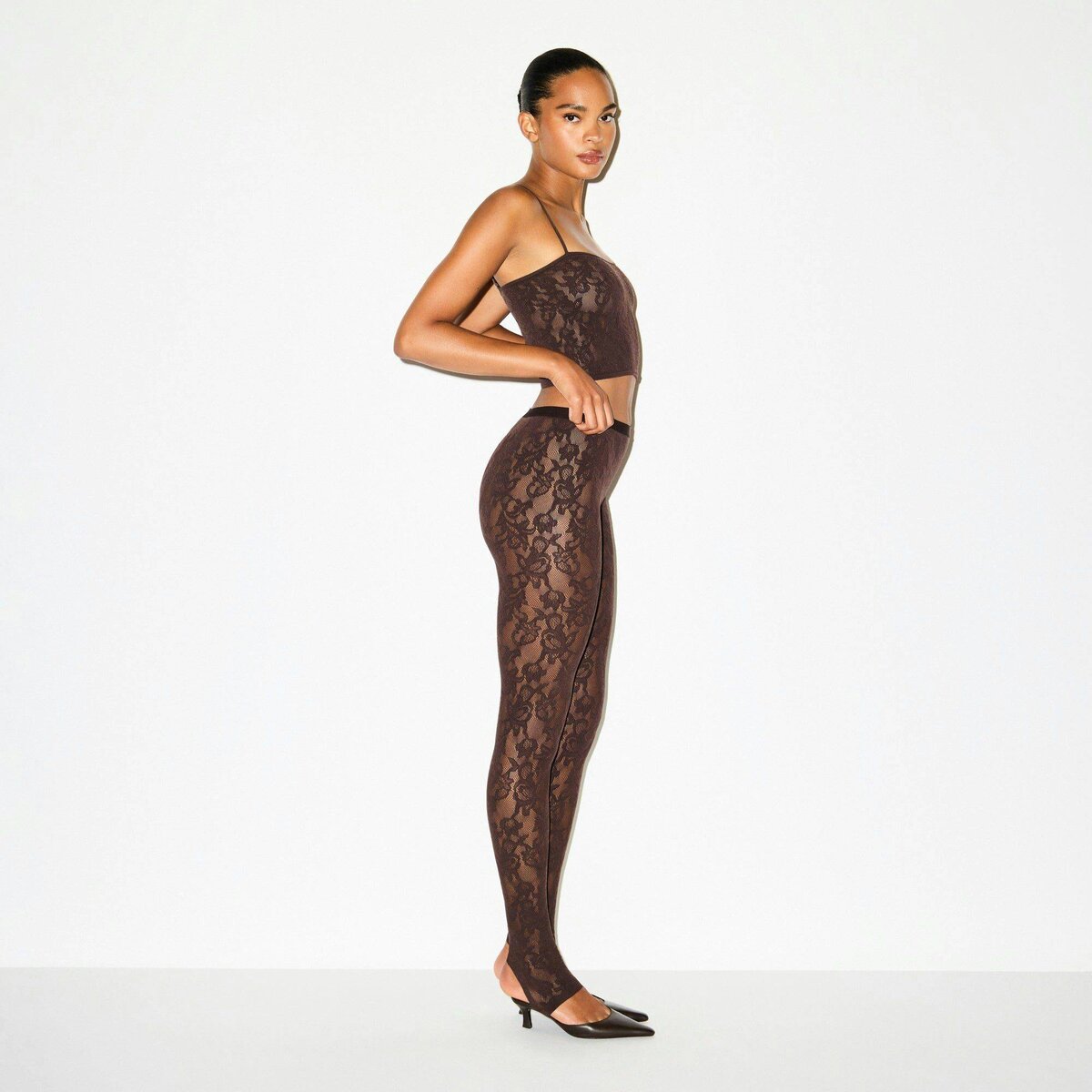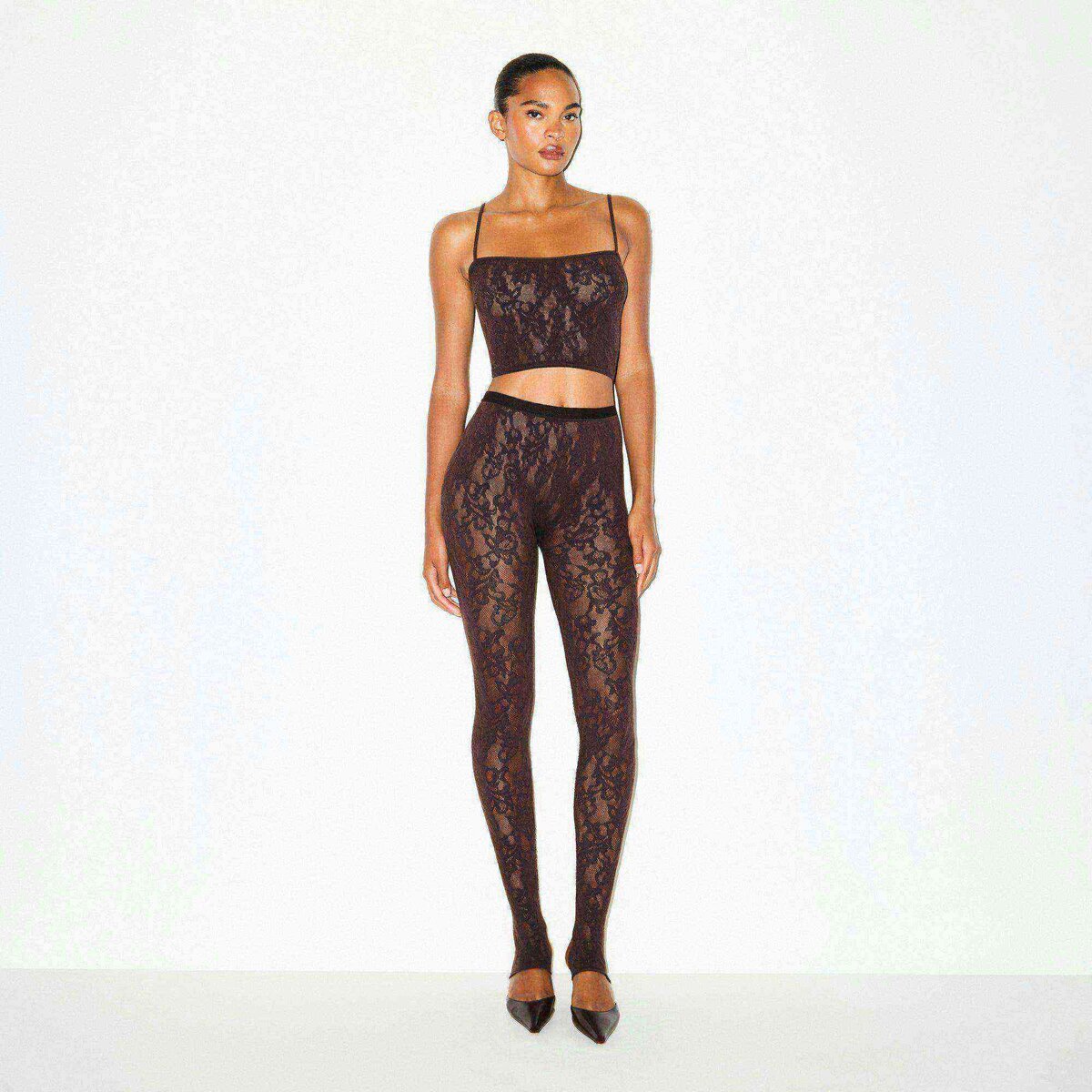 A cami that steals the spotlight. This cropped, body-hugging top is made with our sexy, sheer Knit Lace and features adjustable straps. Fits true to size.