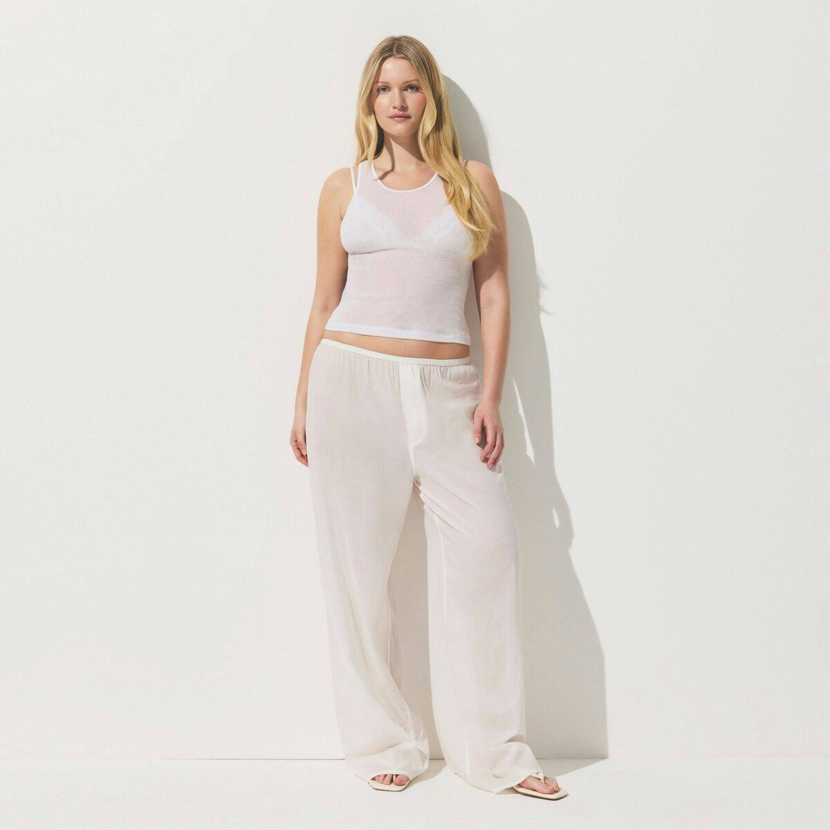 Your lightest, chicest layer. Designed in our sheer ribbed fabric, this airy top will be your go-to summer staple. Features a crew neckline and body-hug…