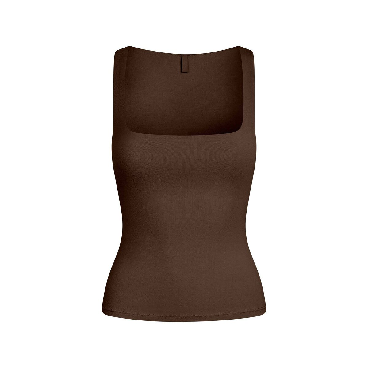 Smooth feel, sleek look. This body-hugging, square neck tank is made with our slinky, stretchy modal fabric for an elevated day-to-night look. Features an interior shelf bra for support and fits true to size.