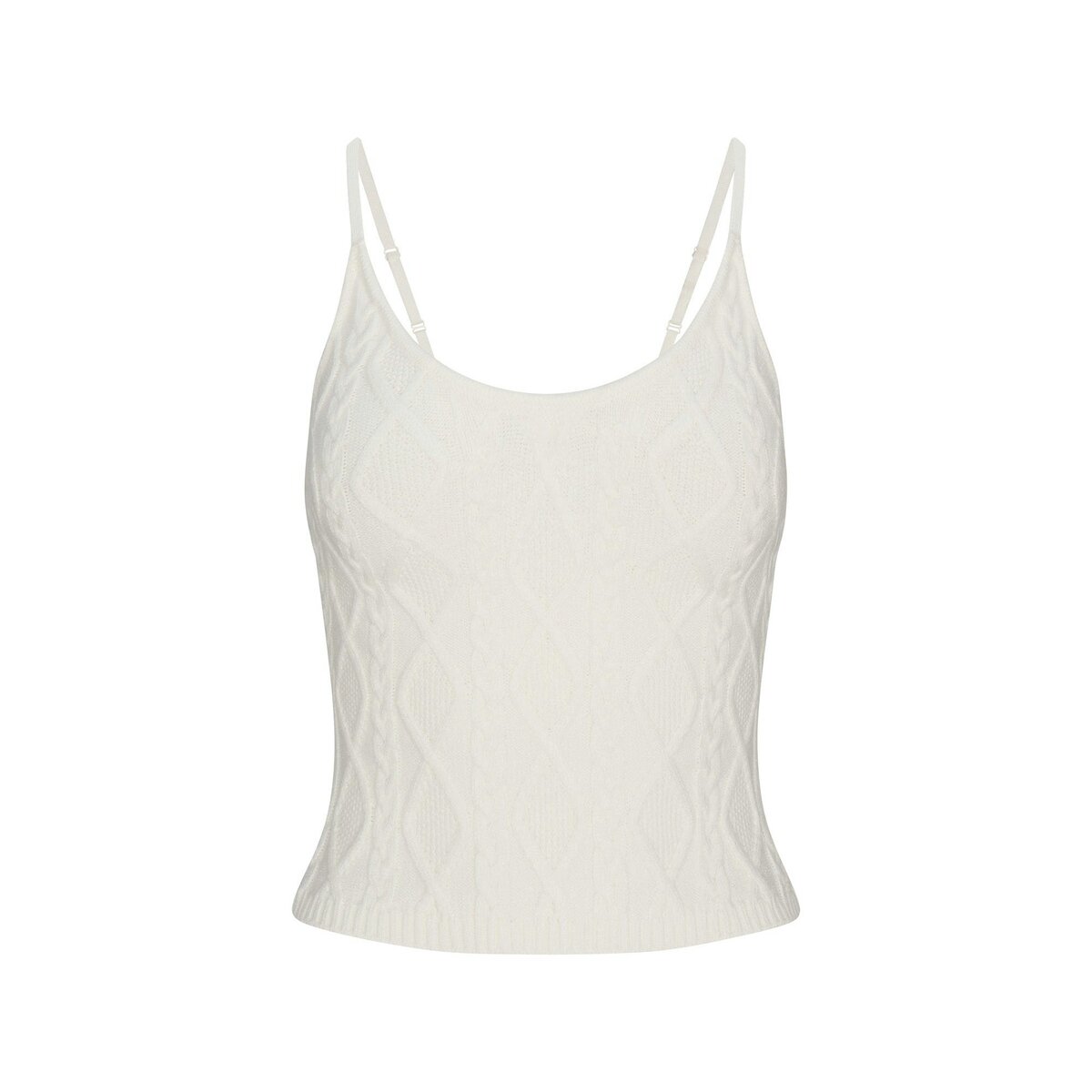 Winter fashion, but make it flirty. This soft sweater knit tank features a low scoop neckline and adjustable straps for your perfect fit. Made in our luxurious cable knit fabric, it’s a winter staple you’ll want to wear all season long.